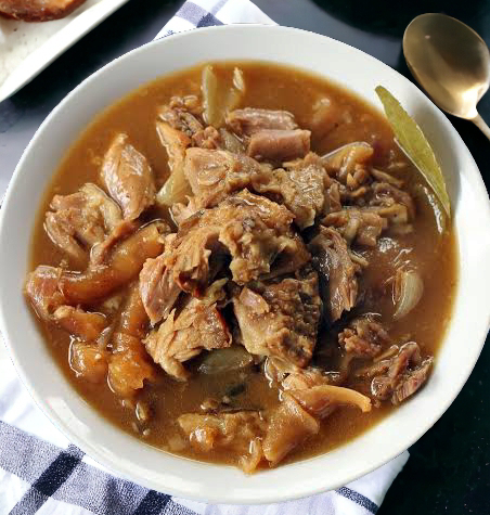 Our recipe calls for a select variety of ingredients each adding a unique touch to the dish. The star, of course, is the half kilogram of pork shoulder, tender and juicy. Accompanying it is a head of garlic, a teaspoon of black peppercorn, three tablespoons of white vinegar, and a quarter cup of soy cooking and seasoning sauce.